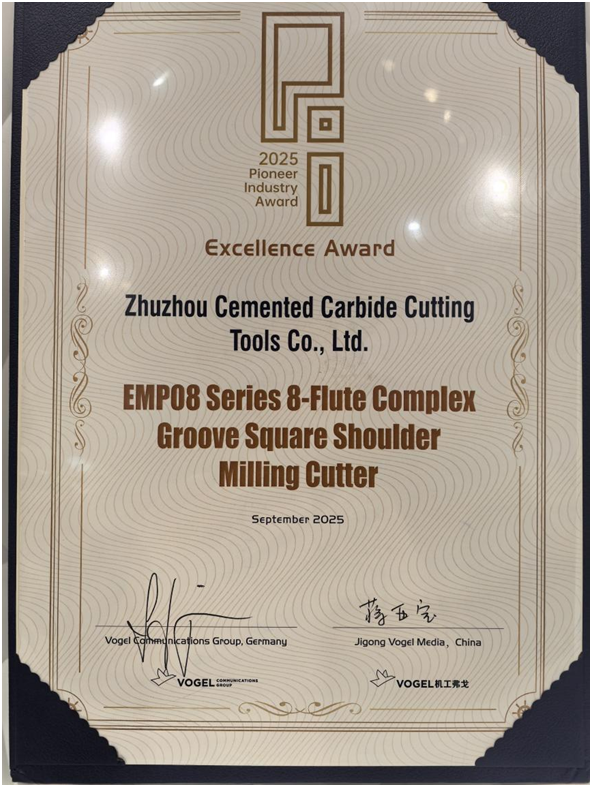 展會(huì)期間,一則喜訊為ZCCCT的“漢諾威之旅”再添光彩——ZCCCTEMP08系列銑刀成功斬獲“PI Award(弗格出海先鋒獎(jiǎng))”!這一獎(jiǎng)項(xiàng)旨在表彰在全球市場(chǎng)中展現(xiàn)出創(chuàng)新力與競(jìng)爭(zhēng)力的企業(yè)及產(chǎn)品,EMP08系列銑刀憑借優(yōu)異的切削性能、廣泛的適用性,以及ZCCCT在海外市場(chǎng)的深耕成果,最終從眾多競(jìng)品中脫穎而出,成為中國(guó)刀具品牌的“獲獎(jiǎng)代表”。