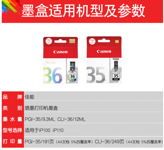 商品名稱:墨盒 佳能/CANON PGI-36 一體式墨盒 500頁及以下 普通裝 多色